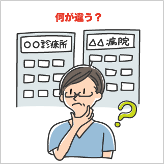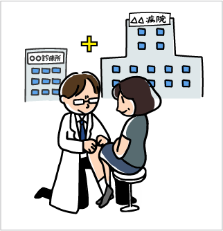 医療機関は、「病院」と「診療所」の2つに分類されています。患者さんが入院できるベッド数が20床以上ある医療機関が「病院」、19床以下の医療機関が「診療所」と法律で定義されています。私たちが町で見かける「〇〇クリニック」や「〇〇整形外科」など、名称に「病院」がついていないものは全て「診療所」です。 ひざのトラブルは、「整形外科」がある「医療機関」で診てもらえます。ご自分で外出できるようなら、通院しやすい近所の「診療所」をおすすめします。近所に「病院」があれば、そちらで受診することも可能ですが、紹介状がない場合は費用が多くかかることがあります(下記「紹介状について」を参照ください)。事前に電話で連絡をしたほうがスムーズに受診できるでしょう。